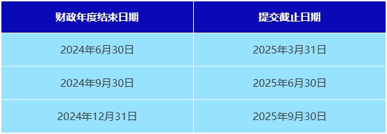 年度申報(bào)表 - 財(cái)政年度結(jié)束后9個(gè)月