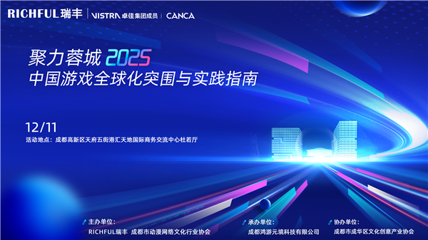 2025 年 12 月 11 日下午,“聚力蓉城 2025—— 中國(guó)游戲全球化突圍與實(shí)踐指南” 活動(dòng)在成都高新區(qū)天府五街港匯天地國(guó)際商務(wù)交流中心杜若廳盛大舉行。本次活動(dòng)由 RICHFUL 瑞豐與成都動(dòng)漫網(wǎng)絡(luò)文化行業(yè)協(xié)會(huì)聯(lián)合主辦,旨在助力游戲企業(yè)在全球化浪潮下,快速且穩(wěn)健地拓展海外市場(chǎng),有效應(yīng)對(duì)政策、合規(guī)及市場(chǎng)等多方面挑戰(zhàn)。