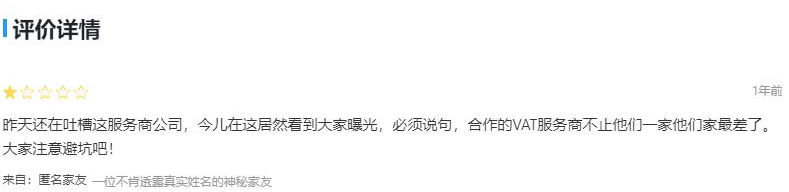 而根據(jù)業(yè)內(nèi)人士的說(shuō)法,目前估計(jì)有一千多家公司在該服務(wù)商辦理了VAT業(yè)務(wù),但現(xiàn)在該公司已經(jīng)出現(xiàn)問(wèn)題,并且傳出了跑路的風(fēng)聲。