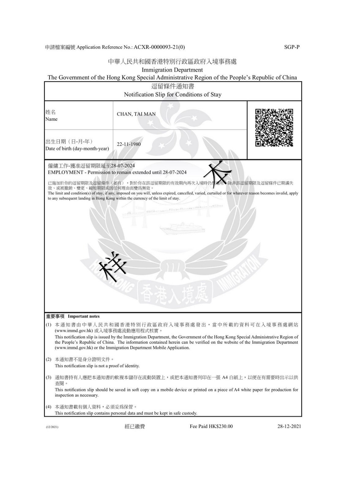需要注意的是,根據(jù)入境處現(xiàn)行規(guī)定,所有延長逗留期限的申請人在遞交延期逗留申請及領(lǐng)取延期逗留標簽當天,申請人本人仍然需要身在香港。也就是說,電子簽證推出后,你僅是可以網(wǎng)上遞交申請及領(lǐng)取延期逗留標簽,并不意味著遞交申請及領(lǐng)取標簽當天你人可以不在香港!