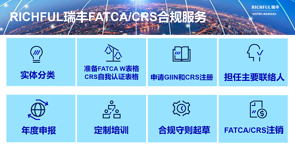 如果您仍然不確定實(shí)體是否落入CRS/FATCA范圍,或者需要我們協(xié)助注冊(cè)/申報(bào)等合規(guī)事宜,請(qǐng)盡快聯(lián)系為您提供專屬服務(wù)的RICHFUL瑞豐客戶經(jīng)理,以尋求支持,我們將竭誠(chéng)為您服務(wù)。
