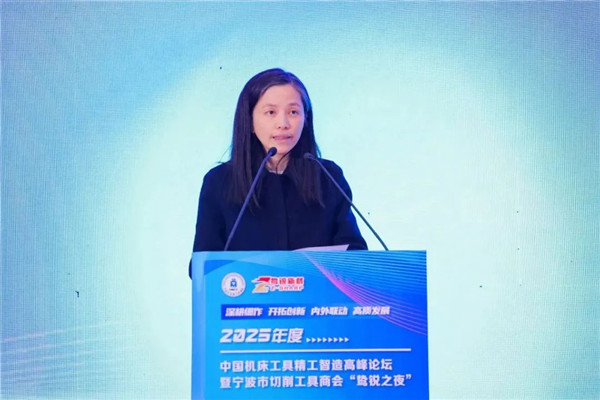 寧波市工商業(yè)聯(lián)合會(huì)黨組成員、副主席樂(lè)敏為本次論壇致辭,她表示:本次論壇機(jī)床工具行業(yè)優(yōu)秀企業(yè)家們和知名專家們溝通交流、共同探討未來(lái)行業(yè)發(fā)展的平臺(tái),是一次行業(yè)盛會(huì),對(duì)于進(jìn)一步把握切削工具產(chǎn)業(yè)發(fā)展的新理念和新趨勢(shì)有積極和深遠(yuǎn)的意義。寧波作為東南沿海的重要制造基地,制造業(yè)實(shí)力強(qiáng)勁,目前已成為全國(guó)首個(gè)國(guó)家級(jí)制造業(yè)單項(xiàng)冠軍突破百家的城市。有良好的切削工具產(chǎn)業(yè)發(fā)展基礎(chǔ),已形成配套完善的產(chǎn)業(yè)鏈,期待和大家一起,共同推動(dòng)寧波切削工具產(chǎn)業(yè)的高質(zhì)量發(fā)展。